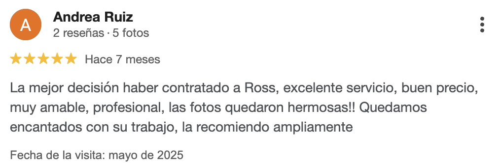 fecha, hora y tipo de sesión (pareja, familia, boda, retrato, etc.).